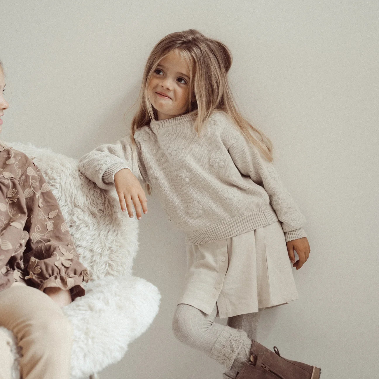 Two You Label - Noah Knitted Flower Jumper - Beige