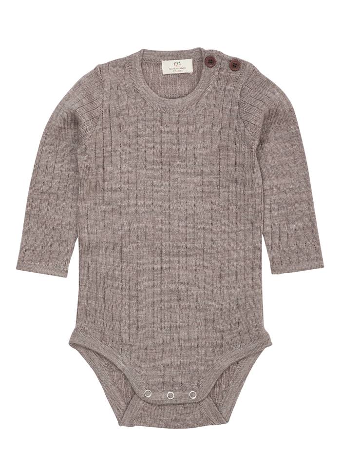 Deze zachte ribbody is gemaakt van 100% merinowol en vormt een comfortabele, ademende stof voor dagelijks gebruik.