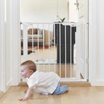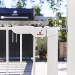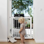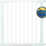 Metalen deurhekje met klemsysteem, inclusief 2 verlengstukken. Geschikt voor deuropeningen van 73,5 tot 79,6 cm (zonder verlengstukken) en tot 93,3 cm (met 2 verlengstukken). Je kan dit nog verder uitbreiden met extra verlengstukken, apart aan te kopen.