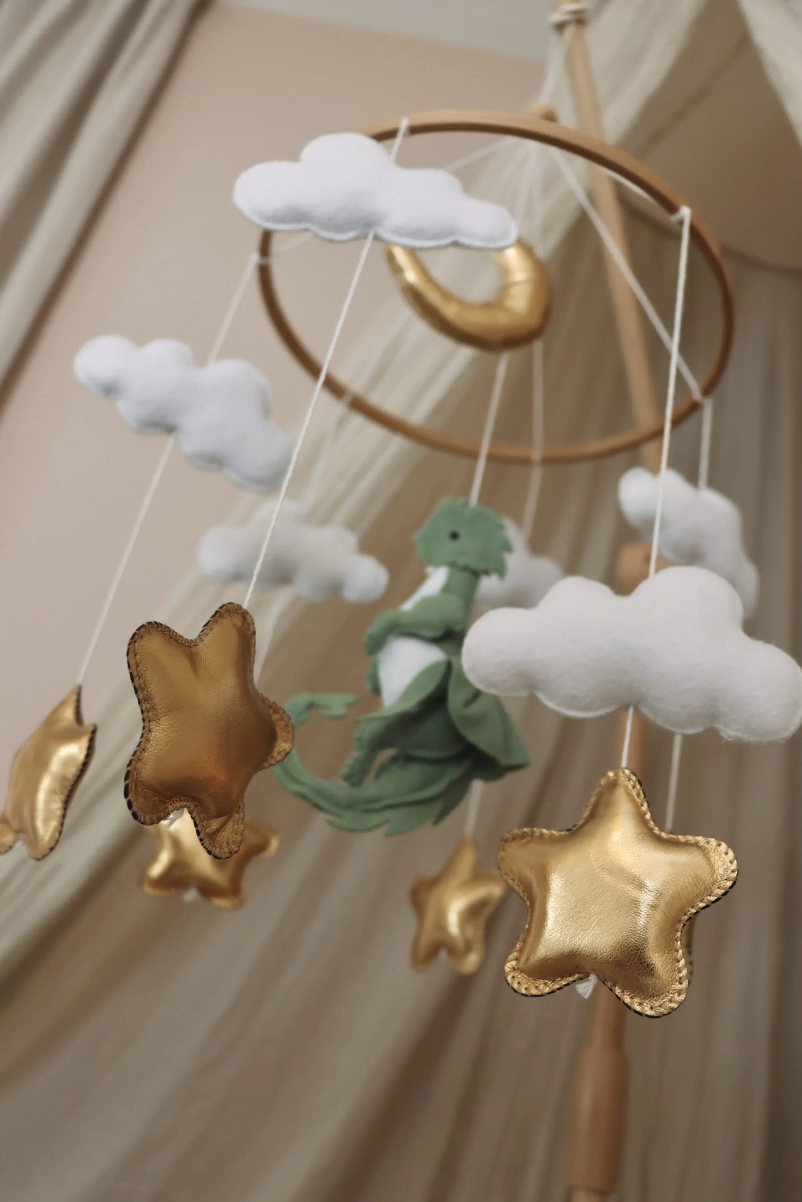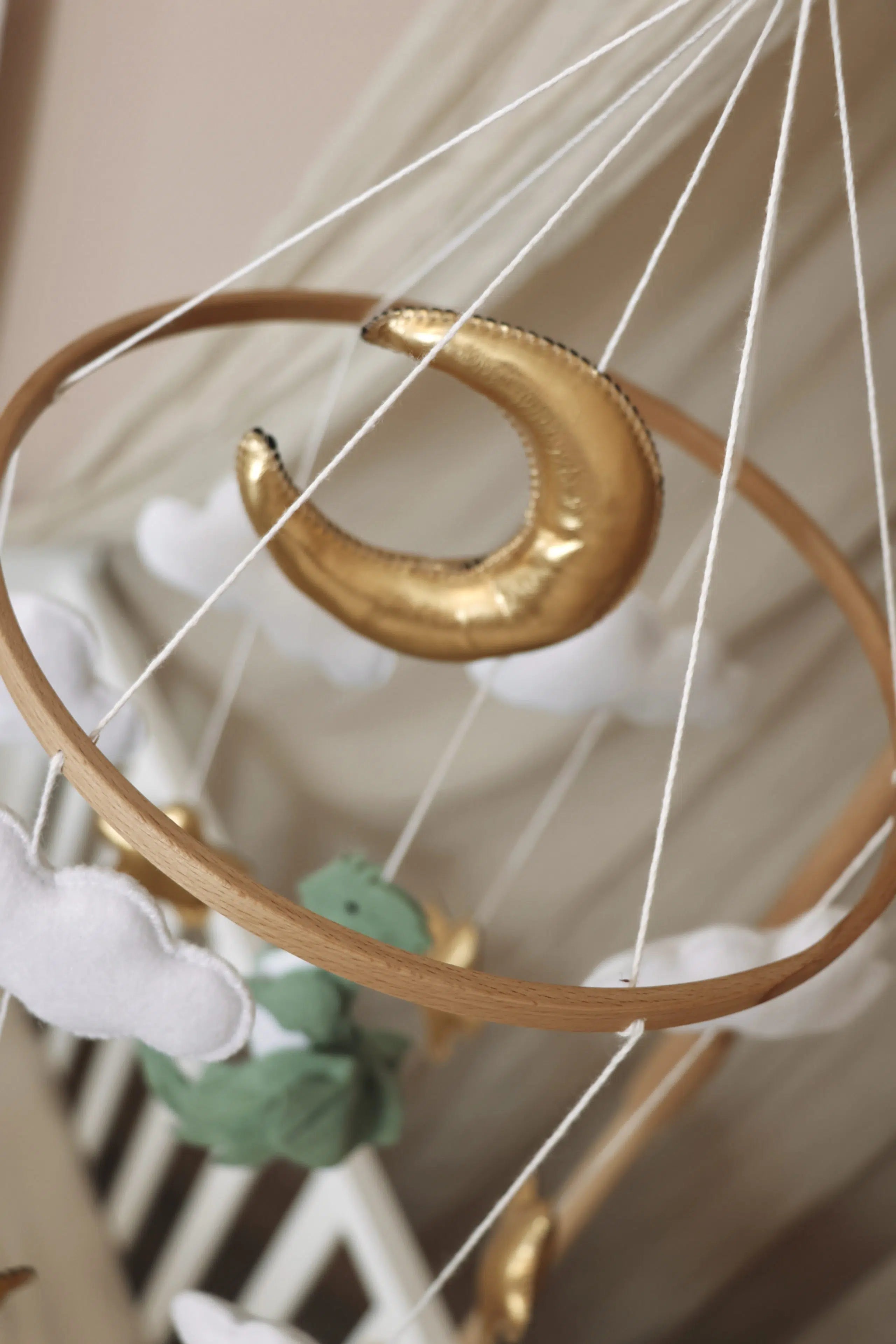 Onze liefdevol handgemaakte Dinosaurus Mobiel is ontworpen om een rustige bedtijdsfeer te creëren. De zachte bewegingen snoozen je baby naar een diepe en gezonde slaap. Elk item dat we maken is met zorg en aandacht gemaakt. Onze Dinosaurus mobiel belooft een boeiende vriend te zijn voor de dromen van je kleintje. De magie van de ruimteverkenning en de zachte beweging van de mobiel helpen je baby in een vredige slaap te vallen, waardoor bedtijd voor jullie allebei een heerlijke ervaring wordt. Kies onze Dinosaurus mobiel en laat ouders en baby genieten van rustgevende nachten en dierbare herinneringen.