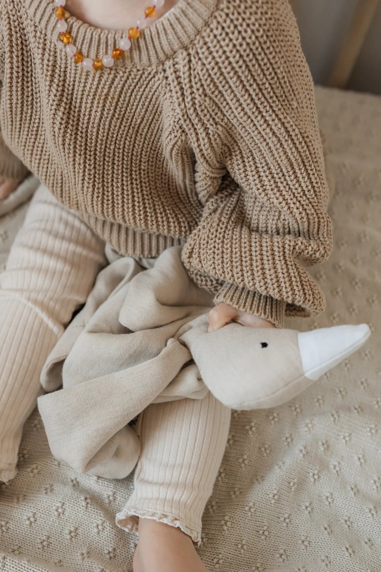 De Cuddle Goose is gemaakt van een duurzame, exclusieve stof die met zorg is geselecteerd.