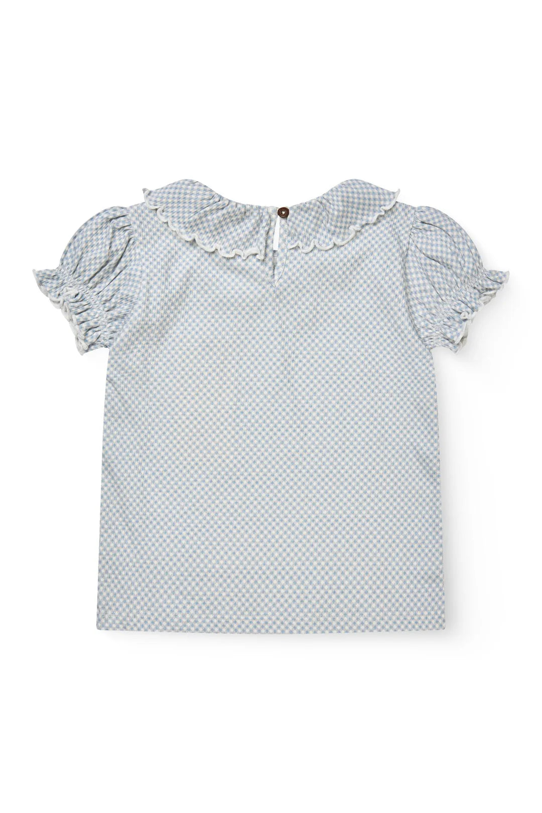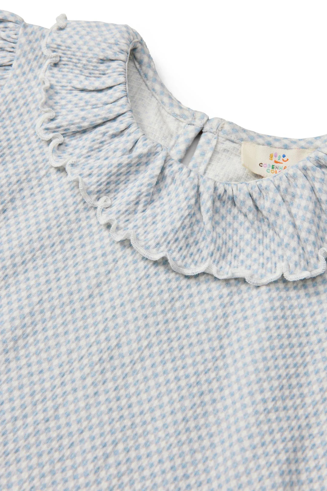 Het subtiele ruitpatroon met gingham-uitstraling geeft een tijdloze toets.