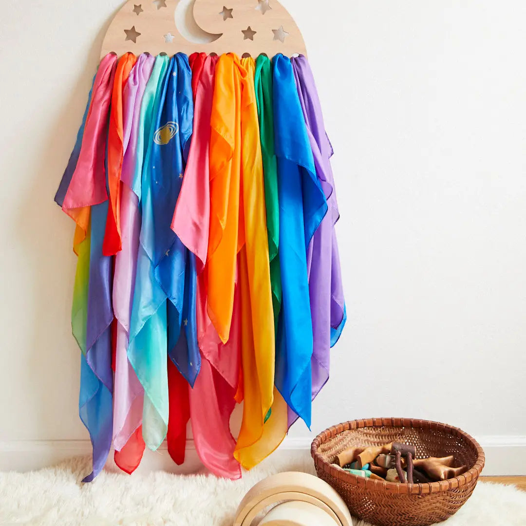 Speelzalen of klaslokalen. Hang het eenvoudig aan de muur en schuif je Playsilks erdoorheen! Leuk en makkelijk voor kinderen die leren om goed voor hun speelgoed te zorgen, en het moedigt jonge kinderen aan om de speelruimte netjes te houden.