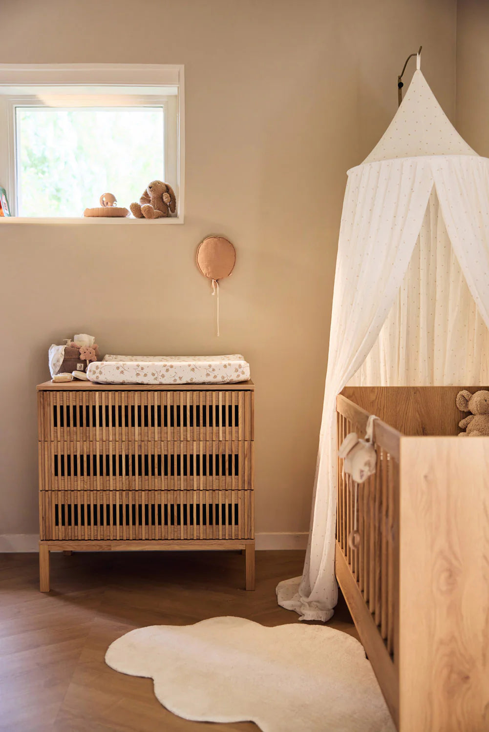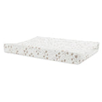Deze aankleedkussenhoes brengt een rustgevende en natuurlijke sfeer in de babykamer. De hoes is gemaakt van heerlijk zachte en rekbare jersey stof en heeft een subtiele all-over print met sierlijke bladeren. Dankzij de elastische randen blijft de hoes goed om het aankleedkussen zitten, zodat je kleintje comfortabel ligt tijdens het verschonen. Dit hoeslaken is perfect te combineren met ons Ruffle lakentje!