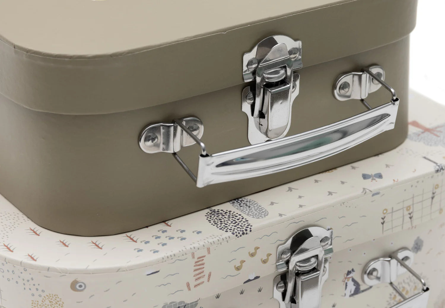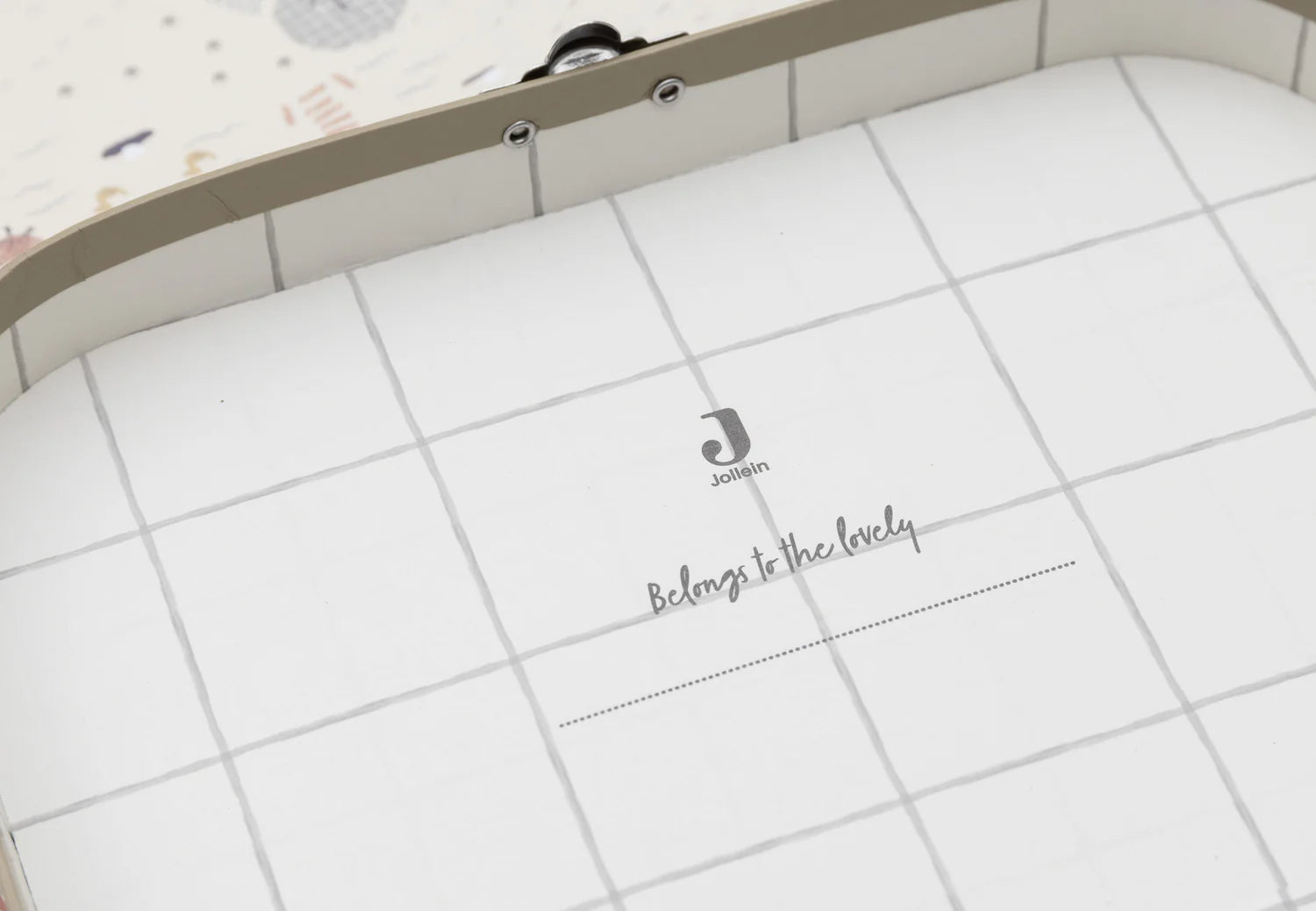 Dit speelkoffertje setje in de Tiny Park stijl is perfect voor je kleintje! De koffertje hebben verschillende prints en dezelfde kleuren als het Tiny Park thema, met zilverkleurige handvatten die het geheel een speelse uitstraling geven. Beide koffertjes hebben een ruitpatroon aan de binnenkant en de tekst ‘belongs to’ zodat jouw mini ze overal mee naartoe kan nemen. Ideaal voor het opbergen van kleine spulletjes of als decoratie in de babykamer!