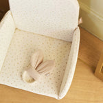 Deze stoelverkleiner heeft een schattige print en biedt extra comfort voor je kleintje. De nieuwe kwaliteit maakt de stoelverkleiner zachter en voorzien van extra padding, voor een nog comfortabelere zitervaring. Daarnaast is de stof makkelijker afneembaar, zodat je hem eenvoudig kunt schoonmaken. Perfect voor de eerste maaltijden van je kleintje!