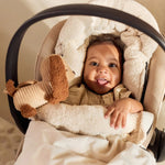 Hoe lief is deze schattige wagenhanger Diego Dog. Het hondje is gemaakt van zachte ribstof in biscuit en heeft bouclé details in leather brown voor een speelse uitstraling. De plastic ring maakt het makkelijk om de hanger aan de wagen te bevestigen. Zijn geborduurde ogen en het stofneusje maken hem extra schattig. Het perfecte vriendje voor jouw mini voor onderweg!
