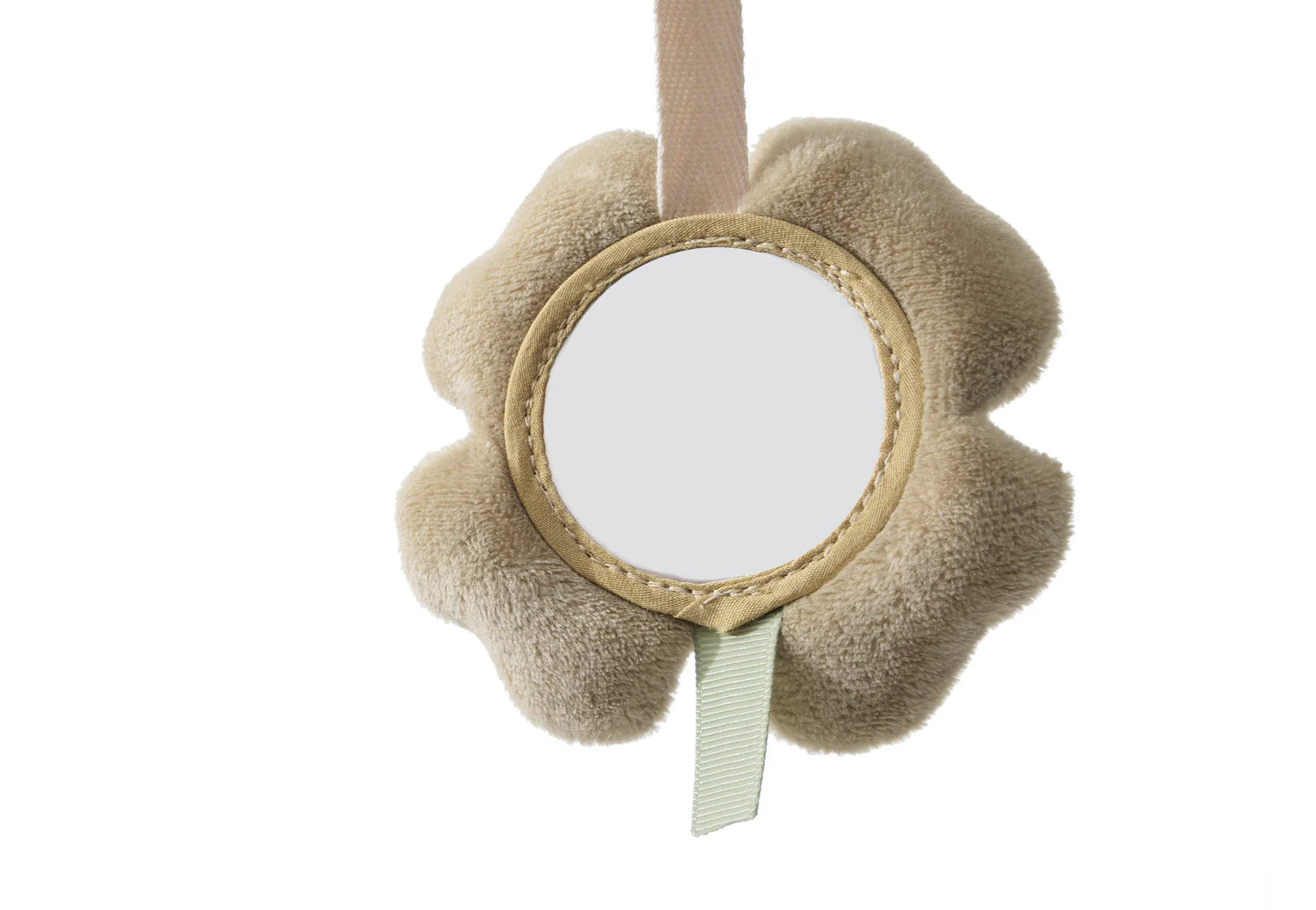 Deze schattige wagenspanner Tiny Park is het perfecte speeltje voor onderweg. Het ontwerp bevat een schattig hondje, een katje en een klavertje vier, waarvan het klavertje een klein spiegeltje bevat voor extra vermaak. Ook maakt de wagenspanner een rustgevend geluid met belletjes. Een heerlijke manier om je kleintje onderweg te vermaken!