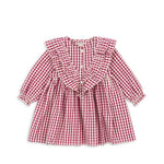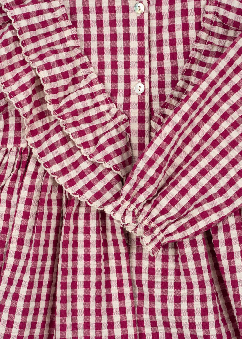 Zachte en draagbare jurk met ruches aan de voorkant en decoratieve plooitjes bij de manchetten.