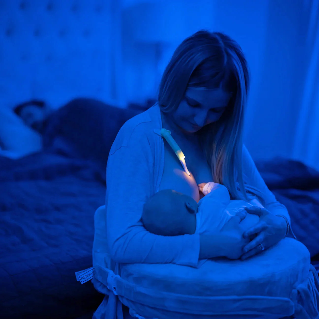 Het goed aanleggen van je baby kan extra lastig zijn wanneer je slaapgebrek hebt. De zachte, warme gloed van de LatchLight vermindert slaaponderbrekingen voor zowel jou als je baby, en doordat hij draagbaar is, heb je je handen vrij om je baby vast te houden en te positioneren. De flexibele, zachte siliconen tip helpt je om de lippen van je baby gemakkelijk aan te passen voor een betere aanleg. Bovendien zorgt het oplichtende ontwerp in het donker ervoor dat je hem altijd kunt terugvinden — zelfs in het donker.