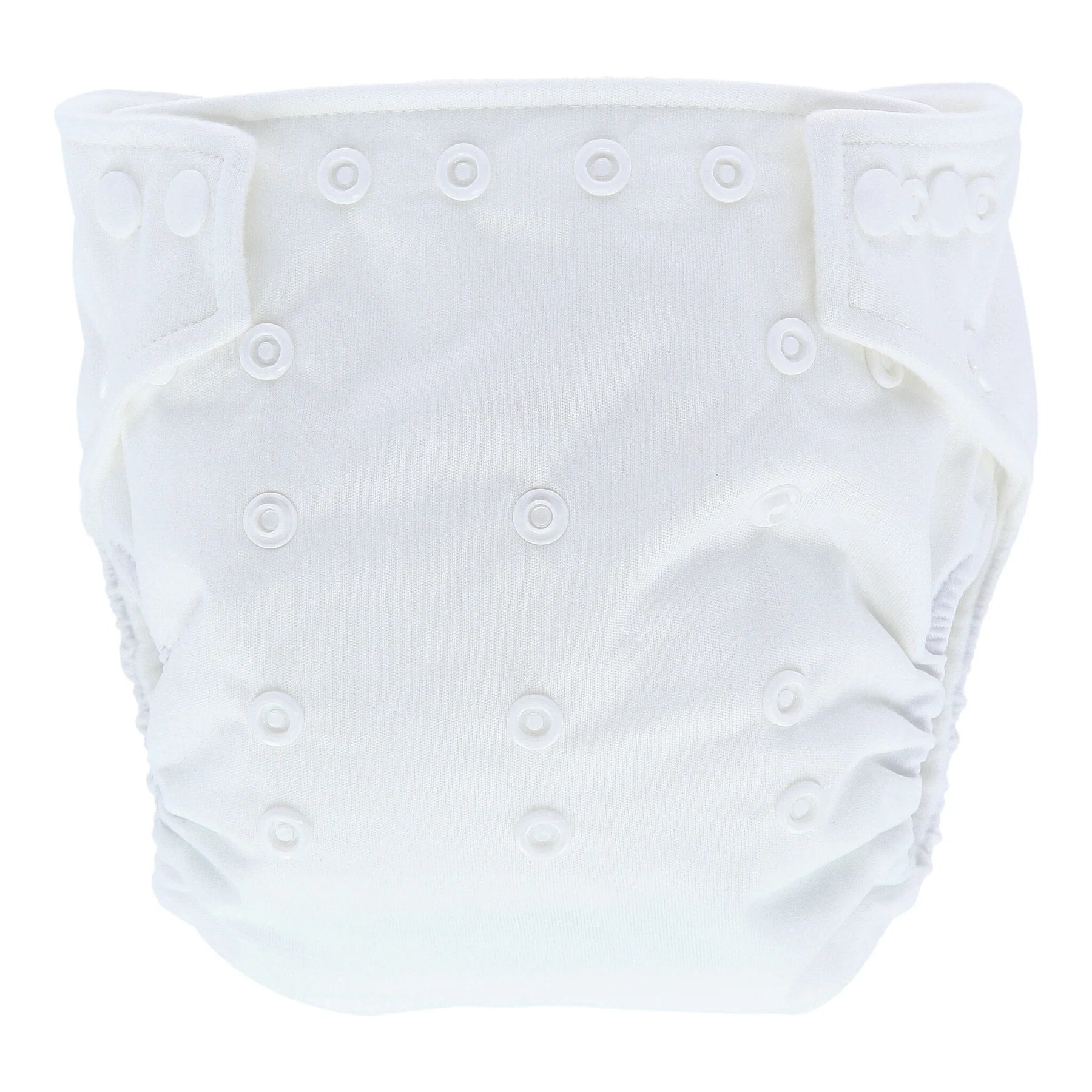 De One size nappy is een one-size luier. Dat betekent dat je voor de hele luierperiode maar 1 maat nodig hebt. Aan de voorzijde heeft de luier drukknoopjes waarmee je hem op maat kan maken. Is je kindje uit de maat gegroeid, dan pas je hem gewoon aan. De luier is heel erg soepel en heeft elastiek aan de achterzijde en langs de beentjes voor een optimale pasvorm.