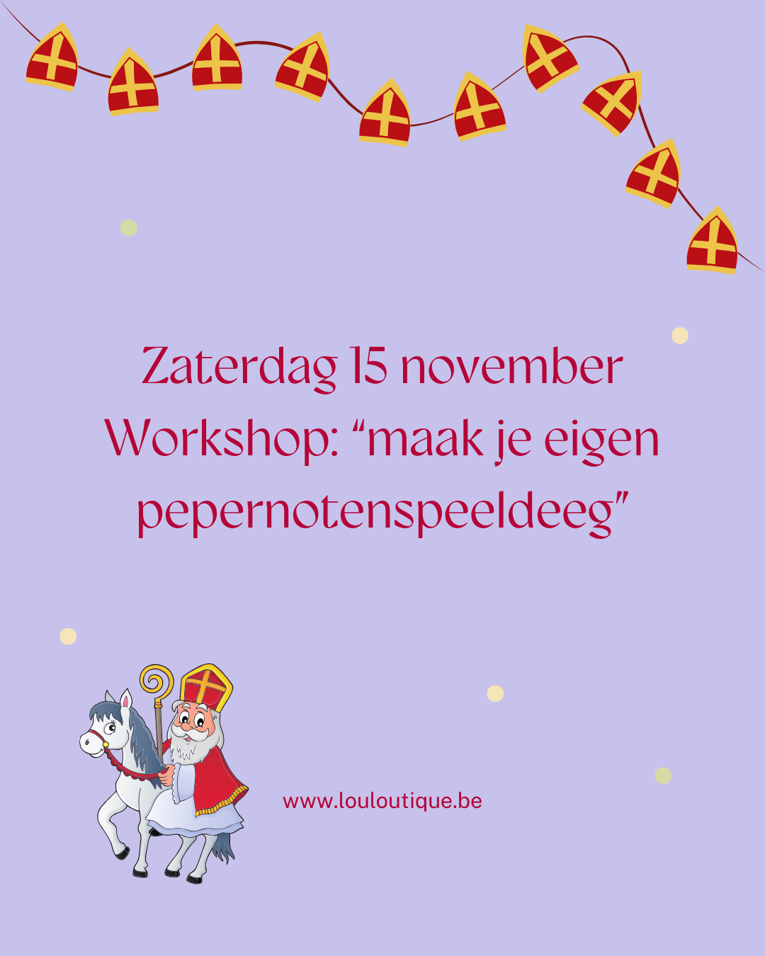 We duiken de Sint-sfeer in! 🎁✨ Op zaterdag 15 november van 10h30 - 11h30 organiseren we een superleuke workshop: “Maak je eigen pepernotenspeeldeeg!” 👩🍳🎅