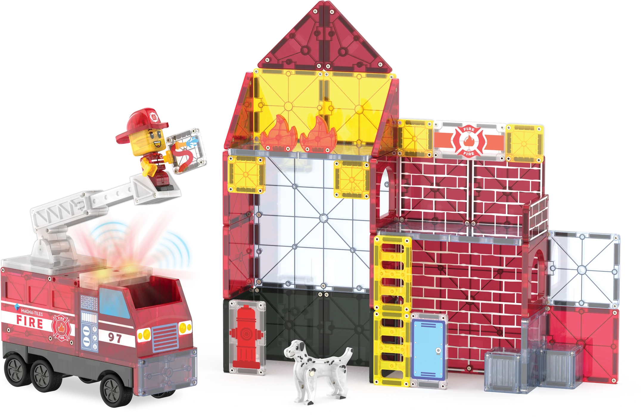 MAGNA-TILES® Brandweer Kazerne – 50-delige Magnetische Constructieset, Het Originele Magnetische Bouwmerk