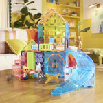 Stap in een wereld waar huisdieren centraal staan en creativiteit geen grenzen kent! Met de MAGNA-TILES Pet Playhouse kunnen kinderen hun eigen ultieme dierenparadijs bouwen voor een speelse puppy, nieuwsgierige kat, vrolijk konijn en hun avontuurlijke hondenmaatje. Open de dubbele deuren en ontdek een speelhuis waar huisdieren op meubels klimmen, van de gloednieuwe glijbaan roetsjen en een ruimte verkennen vol eindeloze fantasie en mogelijkheden. De Mix and Match Dierenverzorger staat klaar om te helpen met de verzorging van de dieren, terwijl microMAGS kubussen het mogelijk maken om meubels of kleine bouwwerken te creëren waar de huisdieren doorheen kunnen spelen. Voeg hekken en poorten toe voor speelse afbakeningen – of om die ondeugende puppy uit de keuken te houden! Pet Playhouse biedt de perfecte combinatie van fantasievol bouwen en plezier. Klaar om jouw verbeelding los te laten? Laten we spelen!