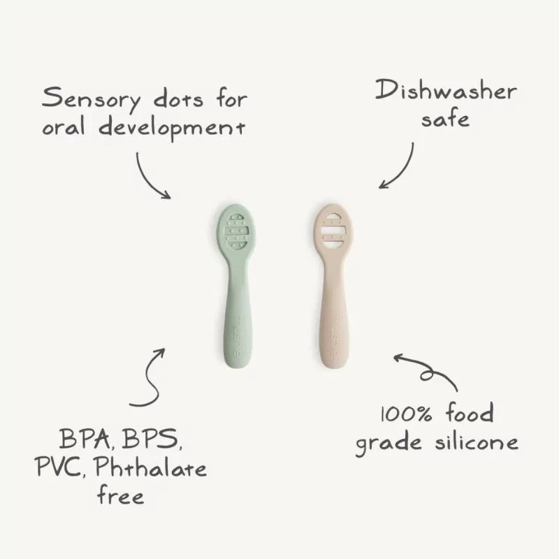 Maak kennis met Mushie's First Feeding Baby Spoon - de perfecte metgezel voor baby's spannende reis naar zelf-voeden!