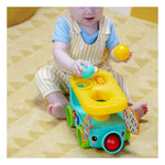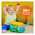 De Pop & Roll Safari Bus Ball Play Toy biedt verschillende manieren om te spelen. Laat de ballen in de gaten bovenop de bus vallen of druk op de oranje hendel om de ballen te lanceren. Lichtjes, melodieën en tropische geluiden belonen baby's terwijl ze de ballen laden. Rol de bus om een bal uit de slurf van de olifant te laten poppen of open de achterkant om de ballen eruit te laten rollen.