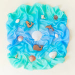 Sea Playsilks zijn met de hand geverfd op vierkanten van 90 x 90 cm, gemaakt van prachtig, lichtgewicht 100% pure moerbeizijde.