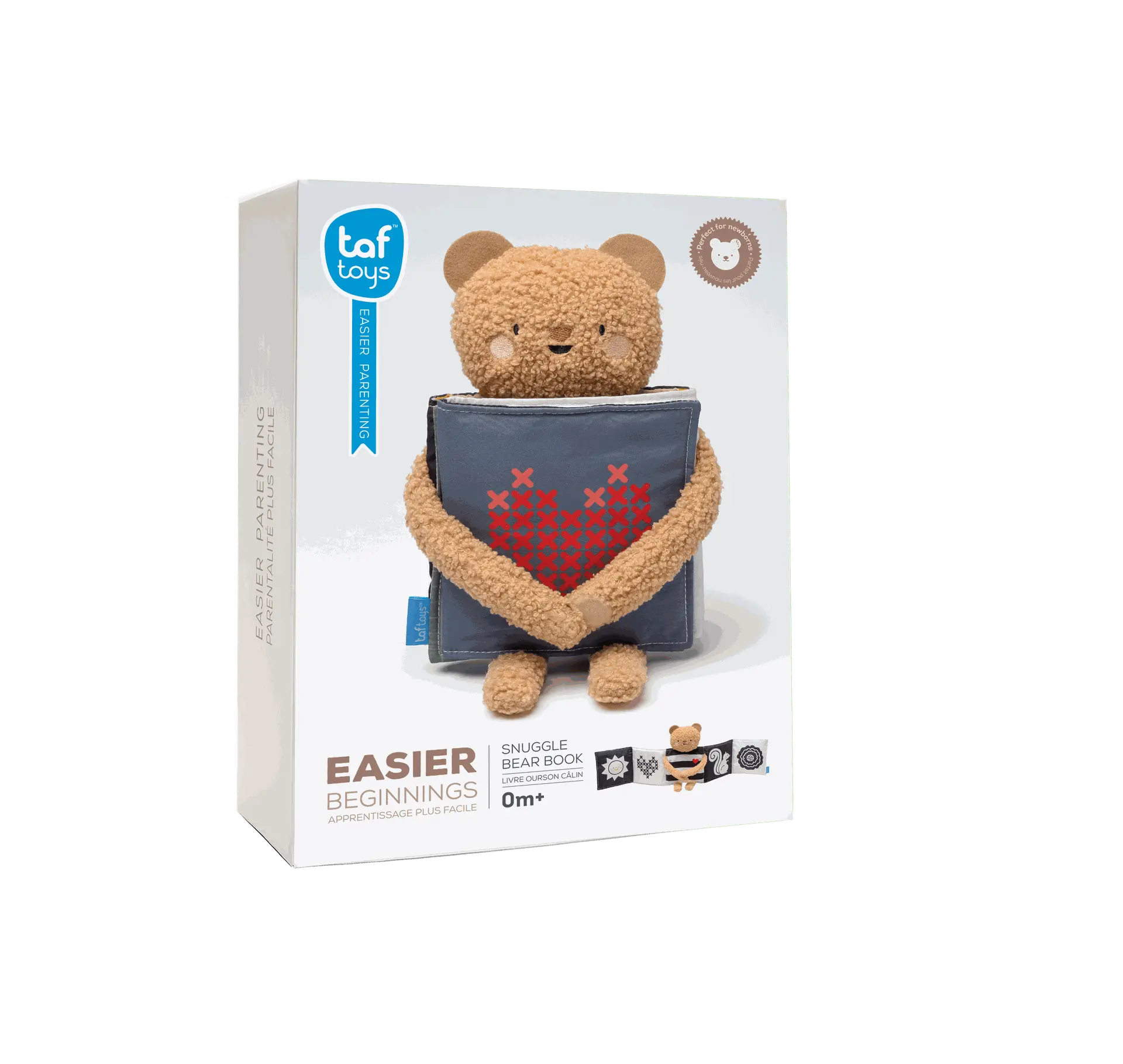 Het Snuggle Beer Boekje is een dubbelzijdig sensorisch boek voor pasgeborenen. Dit opvouwbare boek bevat een ingebouwde, zachte pluchen beer om te knuffelen, heeft een contrastrijke (zwart-witte) kant voor pasgeborenen en een kant met levendige kleuren voor visuele stimulatie. Een babyspiegel zorgt voor interactief plezier, terwijl de beer een vriendje wordt voor tijdens het buikliggen of gezelschap voor onderweg. Perfect om mee te knuffelen en te spelen!