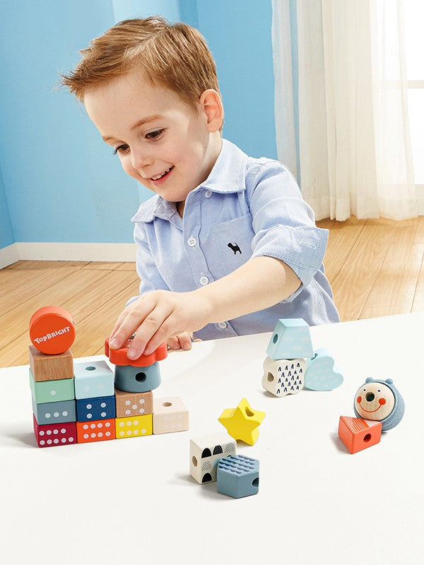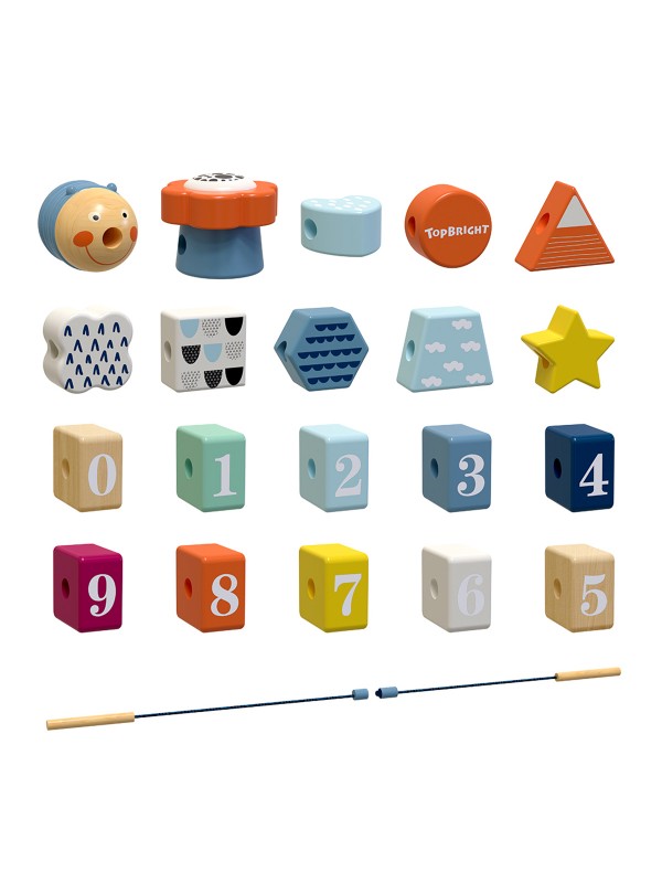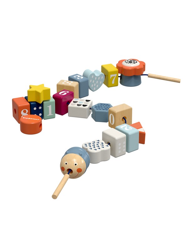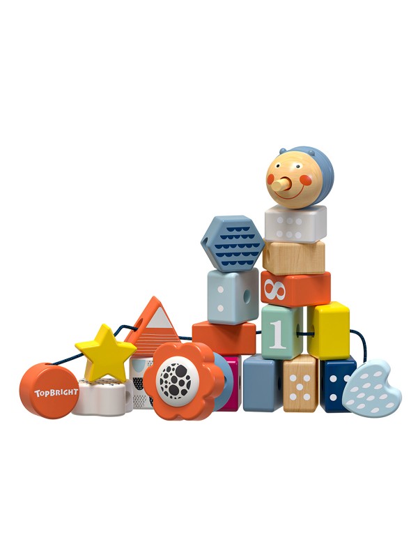 Deze multifunctionele speelset van Topbright in de vorm van een duizendpoot is ideaal voor je kindje! De speelset bestaat uit een touwtje met houten uiteinden en 20 kleurrijke houten kralen in verschillende printjes, vormen en kleuren. Je kindje kan steeds nieuwe combinaties rijgen door de ketting uit elkaar te halen en opnieuw in elkaar te zetten. De zonnebloem maakt een klikgeluid wat het spel extra leuk maakt!