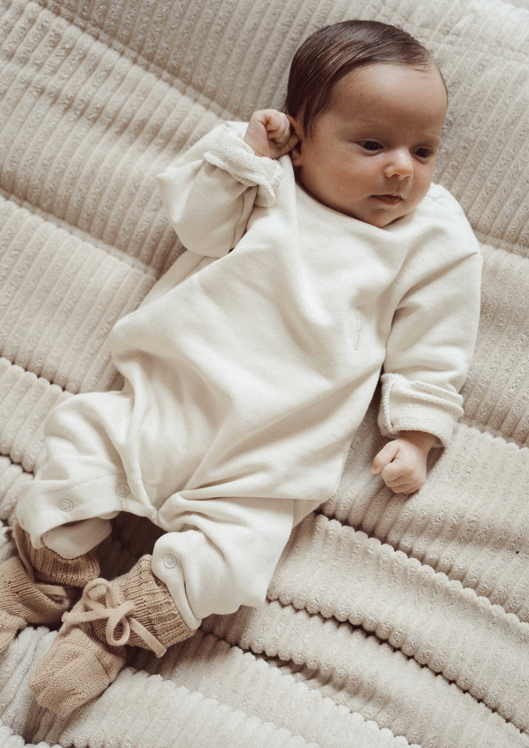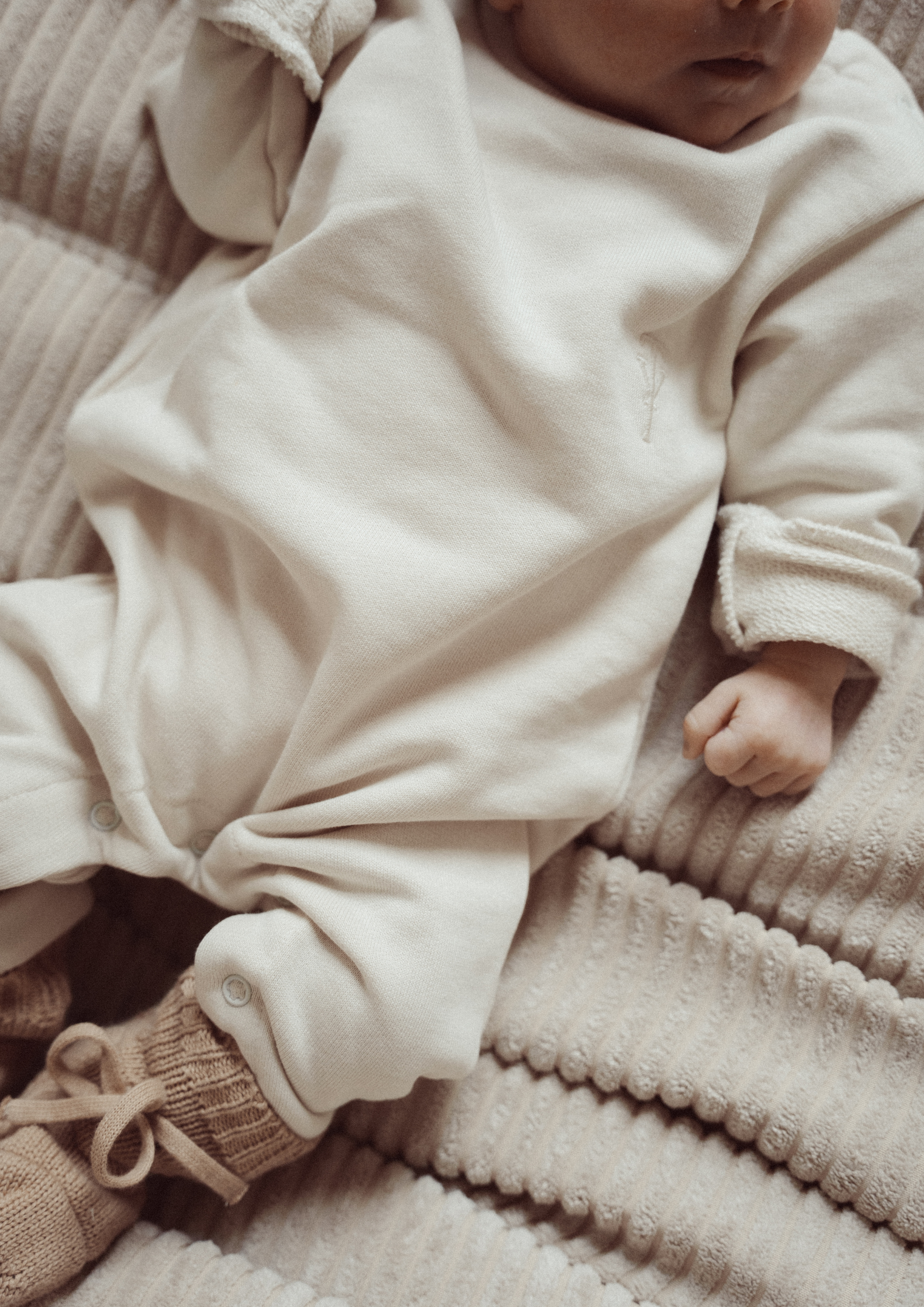Maak kennis met de betoverende Soho Sweat Jumpsuit in Beach, een dromerige combinatie van comfort en stijl voor je kleintje. Dit charmante kledingstuk omhult je baby in zachtheid en biedt tegelijkertijd moeiteloze bewegingsvrijheid en plezier. Maak van de Soho Sweat Jumpsuit een geliefde aanvulling op de garderobe van je baby, perfect voor al hun vrolijke avonturen.